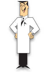 Ele veste um jaleco branco com canetas no bolso e veste uma camisa e gravata por baixo do jaleco. Sua cabeça é um pouco retangular e ele tem cabelos pretos e sobrancelhas grossas. A voz do professor é profunda e pensativa, exatamente o tipo que você poderia esperar de um cientista ou de uma figura paterna.